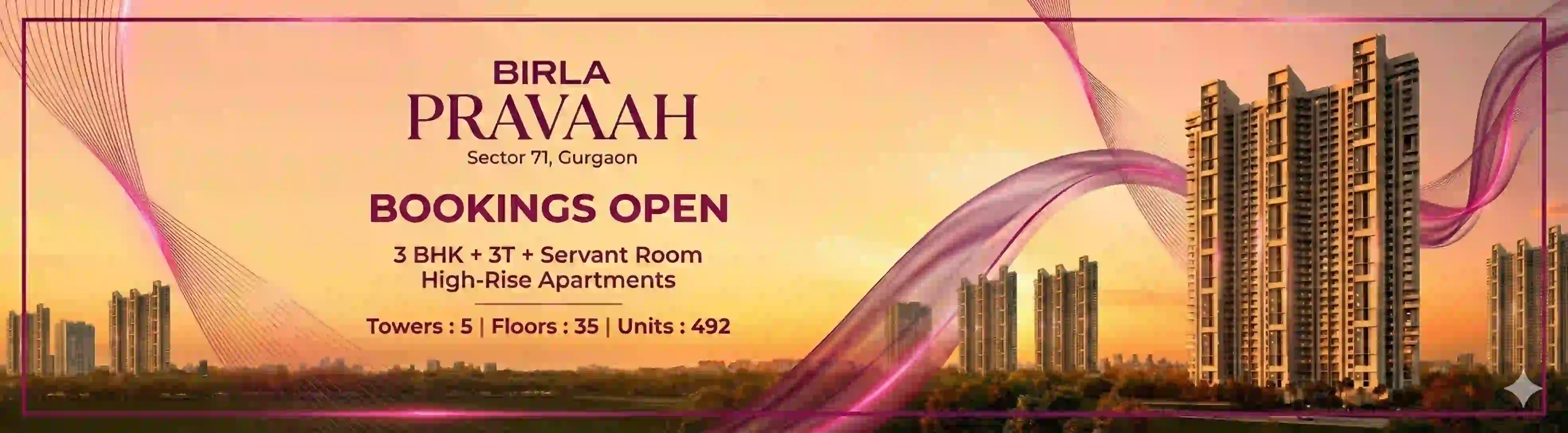 Birla Pravaah by the Birla Estates is a high-end residential development set amid the rapidly developing Sector 71 in Gurgaon. Located on the Southern Peripheral Road, this escalate micro-market in Gurgaon will offer a sensible blend of luxury, comfort and modern conveniences that today's urban dweller has grown habitual to. Spread over approximately 5 to 5.5 acres, Birla Pravaah will feature five high-rise towers designed to offer spacious living, ample natural light and a great lifestyle.